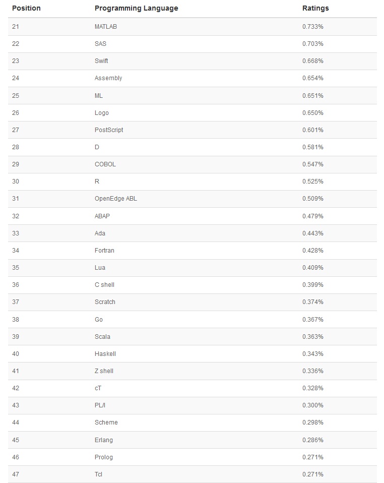 以下是21-50编程语言排名: