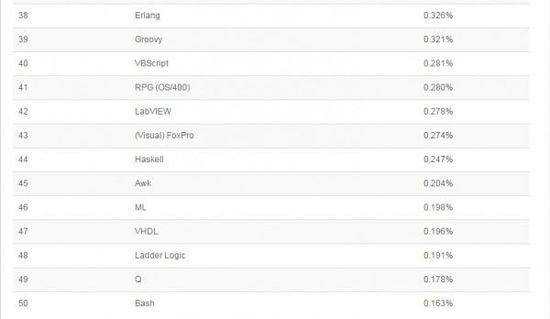 以下是 21-50 编程语言排名: