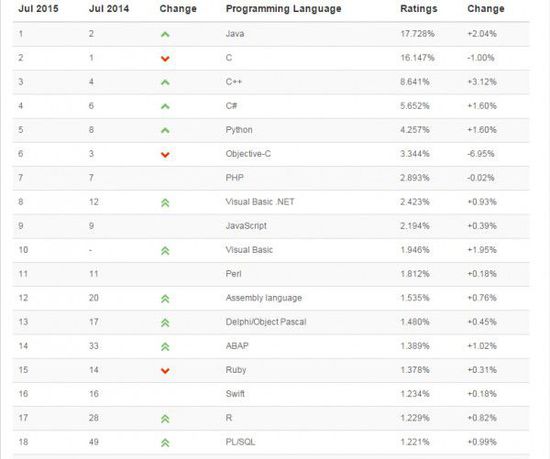 2015年7月编程语言排行榜 C++复兴