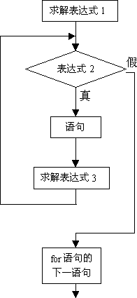 - 求解表达式2,若其值为真(非0),则执行for语句中指定的内嵌语句,然后执行下面第3)步;若其值为假(0),则结束循环,转到第5)步。
