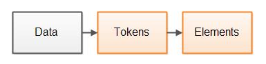 一般解析器设计会将解析过程分为两步。第一步将数据分解为内聚的令牌,令牌是一个或多个已解析数据的字节或字符。第二步解释这些令牌并基于这些令牌构建更大的元素。两步示意图如下: